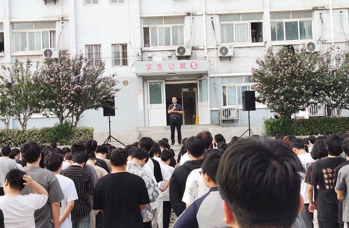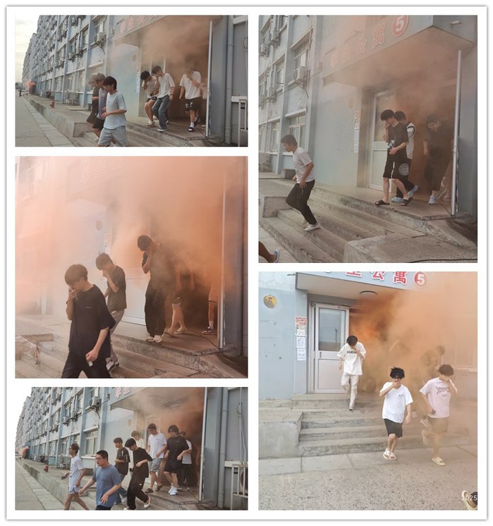 此次活动模拟宿舍发生火灾,随着烟感报警装置响应,楼内报警装置的铃声响彻楼道,在老师们的指导下,同学们临危不乱,自觉捂住口鼻,弯腰小步快走下楼,按照疏散方案从安全通道有序撤离至5号楼门前,疏散到安全地带。最后,石风雷老师对此次演练活动进行了总结,指出整个应急疏散演练活动规范有序、迅速高效,并提醒同学们还要继续提高消防安全意识,秉持“安全第一,生命至上”的原则,共同筑牢校园安全防线。