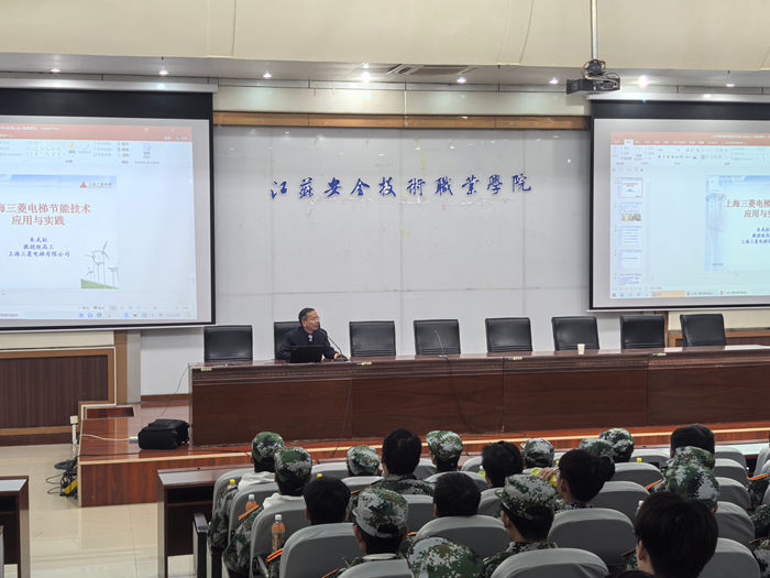 在讲座的核心环节,朱教授以渊博的学识和丰富的行业经验,为同学们系统梳理了近现代电梯关键技术的发展脉络,重点聚焦于绿色、低碳时代背景下电梯节能技术的演进与创新。朱武标教务长详细解读了电梯能耗的构成,并以上海三菱电梯的最新研发成果为例,深入浅出地介绍了目前行业最前沿的节能技术、工作原理及其在实际项目中的应用成效。朱教授的讲解内容翔实、案例生动,将前沿技术与工程实践紧密结合,使同学们对电梯节能技术有了系统而深刻的理解。