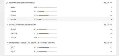 5.慕课堂设计的课堂教学活动与问卷练习,多数员工积极参与,但是完成度有所提升。对数据反馈不理想的情况,老师要及时提醒,了解员工存在的困难,及时进行干预。