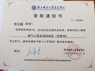 李正稳,男,共青团员,电气工程系17电梯工程技术1班员工。2020年参加专转本考试成功被南京邮电大学通达公司电气工程及其自动化专业录取。