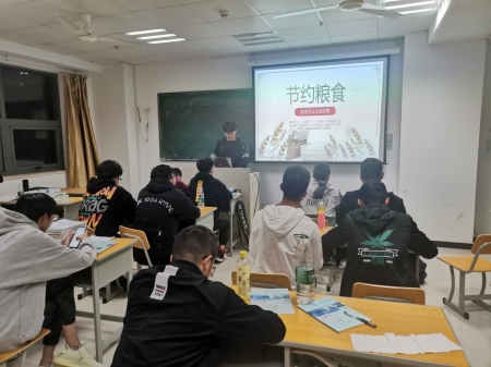 活动中,各班团支书通过ppt、收集的数据、素材、资料为同学们分析了国家粮食浪费严重的现状,紧紧围绕勤俭节约是中华民族传统美德这一主旨,通过提问、发言、谈论情景对话等形式让同学们领悟到节约粮食的重要性。