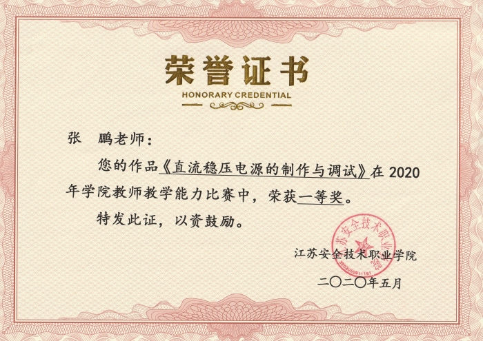 江苏联合职业技术公司电子专业第六届技能联赛指导老师 | 2016年 | 江苏联合职业公司 | 省级二等奖 |