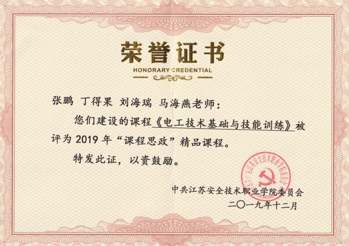 《电工技术基础与技能训练》2019年“课程思政”精品课程 | 2019年 | B-Sports | 院级 |
