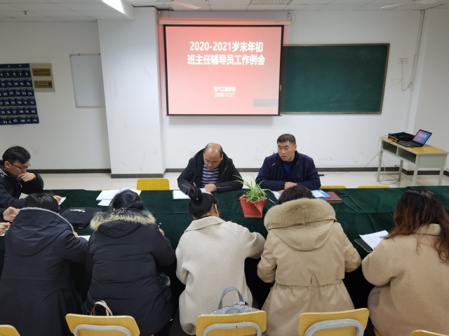 12月27日晚,电气工程公司在综合楼610召开2020-2021岁末年初班主任、辅导员例会。电气工程公司经理王郝、副主任丁建俊及全体在校班主任、辅导员出席,会议由丁主任主持。