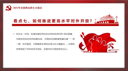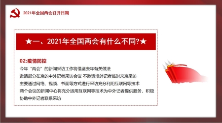 本次学习分为四部分,分别介绍了全国两会召开日期,全国两会会议主要内容,全国两会的七大看点,全国两会的六大关键词。今年的两会意义深远,站在“两个一百年”奋斗目标的历史交汇点上,全国两会确定了今后5年乃至更长时期经济社会发展的行动蓝图。把智慧和力量凝聚到两会确立的目标任务上来,齐心协力做好各项工作,实现“十四五”开好局、起好步。