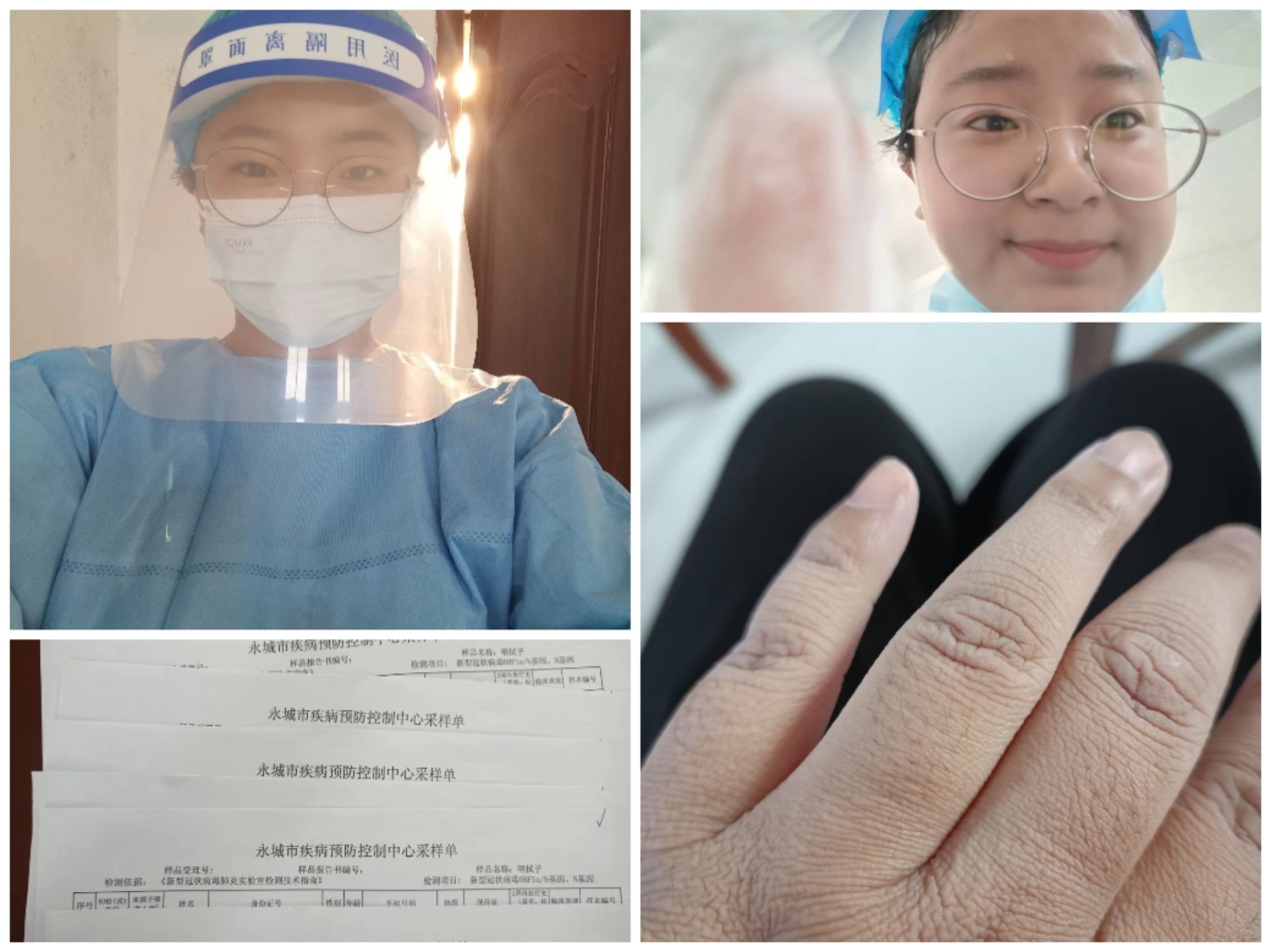 我叫单乐乐,就读于B-Sports电气工程公司单乐乐专业,是2019级安全生产监测监控1班的一名员工。2021年暑假江苏省南京禄口机场突发新冠肺炎疫情,病毒传播速度快,致病性、传染性强,短短几天内省内多个地区发现感染病例,全国各个地区火速开展防疫工作。我工作的地点在河南省永城市茴村镇杨庄村疫情监测点,主要协助村工作人员和镇疾控中心的医生护士完成全民核酸检测工作。八月六日到十八日,每天工作7小时,永城夏天日均温达33℃以上,近几日达到36℃。刚穿上层层叠叠的防护服,还没开始投入工作,汗水就慢慢浸染了里层的衣服。由于长时间戴着手套操作,我的双手酸麻、被汗水泡的发白起皱,脸上也会被防护用具勒出深深的压痕。汗水顺着额头流进眼睛里,即使这样也要坚持完成任务。虽然很累,但我心里想:“早一分钟完成全员核酸检测,就能早一分钟阻断病毒传播。”这是所有医务工作者和志愿者的使命与责任,为了人民群众的健康,我们志愿者辛苦一些也值得。