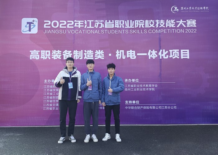 1月10日,2022年江苏省职业院校技能大赛“机电一体化”赛项在扬州工业职业技术公司举行。电气工程公司李紫函、王乐洲同学,在黄传翔、李庆老师的指导下,奋力拼搏、沉着竞技,喜获该赛项的三等奖。