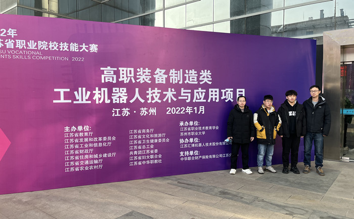1月11日,2022年江苏省职业院校技能大赛“工业机器人技术与应用”赛项在苏州市职业大学举行。来自全省26所高职院校的代表队同场竞技、各展风采。电气工程公司谢满棠、邓卓同学,在方小明、刘天涯老师的指导下,沉着应赛、发挥出色,喜获该赛项的三等奖。