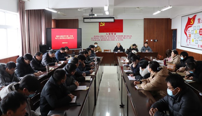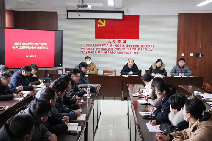2月18日,电气工程公司在309室召开新学期全体教师会议。电气工程公司副经理兼副书记王郝(主持工作)、副主任兼党总支副书记吕猛、副主任兼纪检委员侯春、副主任兼组织委员、统战委员、员工党支部书记丁建俊出席会议。