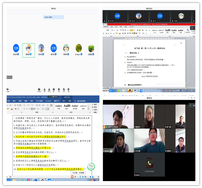 3月2日,电气工程公司四个教研室分别开展线上教研活动,讨论本周线上教学情况,对接下来的教科研工作等进行布置。