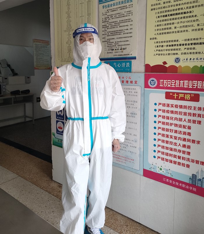 4月11日,公司贾汪校区开展疫情防控应急处置演练。电气工程公司党员主动请缨,组建了副经理兼副书记王郝(主持党政工作)、党总支副书记吕猛、副经理丁健俊、辅导员石风雷、靖中华组成“大白”团队,参与了应急与处置演练。