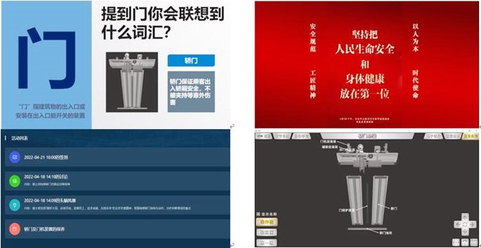 本次授课的内容为轿门系统的维护保养。课前环节,员工利用职教云平台自主学习了电梯轿门的在线开放课程,并已完成课前检测,以问题为导向进入本节课的学习。在课中环节,通过教师示播放事故案例的方式引入本节课的内容,提高员工的安全意识、责任意识,将习近平总书记讲话精神等思政元素融入课堂,有效推进了课程思政建设。授课中利用正反两方辩论,投票环节,培养了员工的团队意识和竞争意识,并利用仿真软件为员工剖析轿门动作原理,突破本节课的重难点。最后,通过员工仿真练习检测,较好的完成了教学目标,并布置头脑风暴为下节课内容做铺垫。