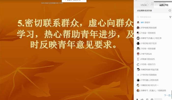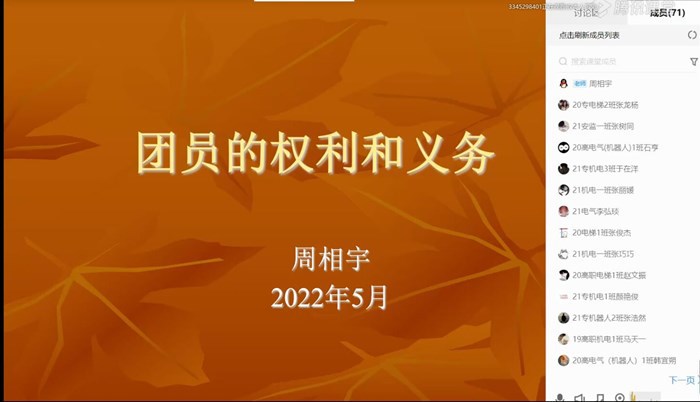 周相宇就共青团团员的权利、义务、权利与义务的关系等内容做了详细的解读。周老师结合实例进行分析,让员工们对团员的权利与义务有了更加直观的认识,对自己的新角色有了更加深刻的理解。青年加入共青团以后,团组织要从思想、政治、组织上对其言行提出具体的准则,同时要保证其在团内的正当权益。作为团员,要主动发挥个人积极性和创造性,树立主人翁意识,同时要提高自身素质、发挥模范作用,积极完成团的各项任务,全力维护团组织的先进性。