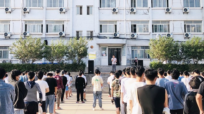 为保证消防演习顺利完成,5月29日晚,副经理丁建俊专题召开动员会,向辅导员、班主任、员工细致传达此次疏散演练的基本流程、疏散要求、人员安排等,为第二天的消防演习做好了充分的准备。6:50警报响起,电气工程公司消防演习拉开帷幕。员工们迅速从宿舍往外跑,每层楼的负责老师在楼道内组织撤离,让员工们加快速度、不要推搡、拥挤,一定要注意安全。员工们沿着安全通道,快速顺利地撤到宿舍楼前的安全区域。辅导员清点班级人数、完成汇报。