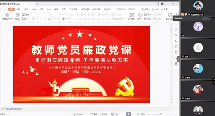 此次党课的主题是贯彻落实廉政准则 争当廉洁从教表率。吕猛从贯彻落实廉政准则  争当廉洁从教表率、如何做到廉洁从教两个方面开展此次党课教育。吕猛从老师们身边的现实案例讲起,列举与《廉政准则》要求相悖的违规行为。督促全体教师必须抓好对《廉政准则》的学习,逐条逐句学、原原本本学,全面、透彻、深入地领会其精神实质,筑牢拒腐防变的思想防线。吕猛要求全体教师坚持教育公平,履行教师本分,全身心投入到公司产品工作中,全心全意教育好每个员工,营造健康和谐的家校关系、风清气正的社会风尚。