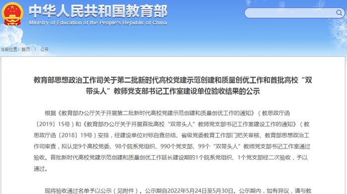 近日,教育部公布第二批新时代高公司党建示范创建和质量创优工作验收结果,电气工程公司教师党支部顺利通过教育部第二批“全国党建工作样板支部” 验收。这是公司首次获评全国党建样板党支部,是公司党建工作取得的历史性突破。