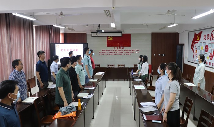 教师党支部纪检委员赵慧娟同志宣布票决结果和支部大会决议。经支部大会无记名投票表决,同意接收王劝同志为中共预备党员。教师党支部组织委员、宣传委员兼统战委员朱千锋同志带领预备党员王劝,面向党旗,佩戴党徽,举起右手、握拳过肩,庄严宣誓入党誓词。新党员王劝作表态发言,表明了为党奋斗的决心,坚定了为共产主义事业奋斗终身的信念。